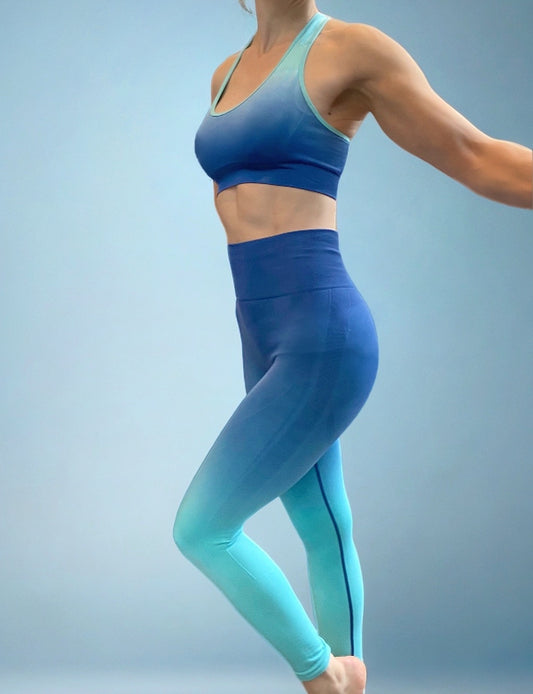 High waist pleated back pants and T-shape bra set, Blue ombre