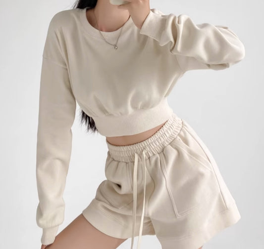 Textured Crop Sweatshirt, Ivory colour