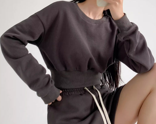 Sold outTextured Crop Sweatshirt, Dark Khaki