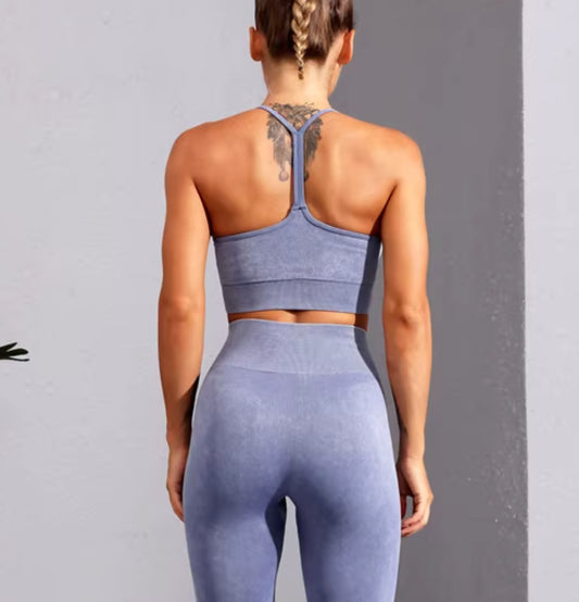 *NEW* High waist pants and U-shape bra set, Textured Blue